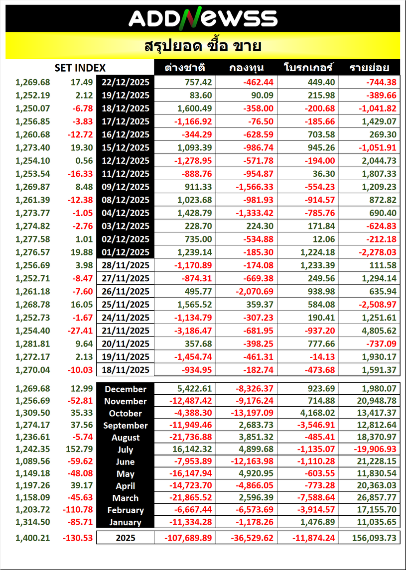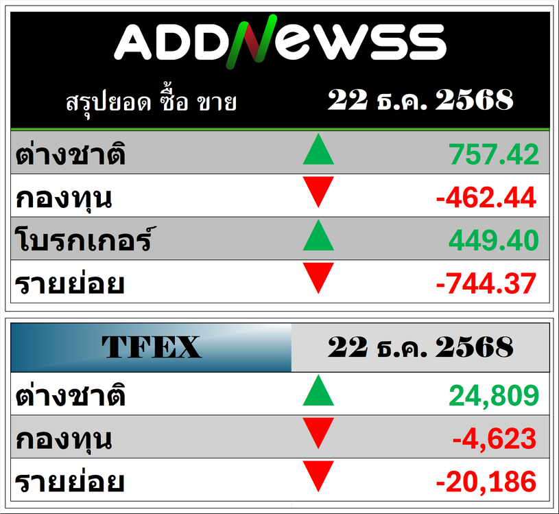 🔥🔥สรุปยอด 🟢ซื้อ🟢🔴 ขาย🔴 📅22/12/2025