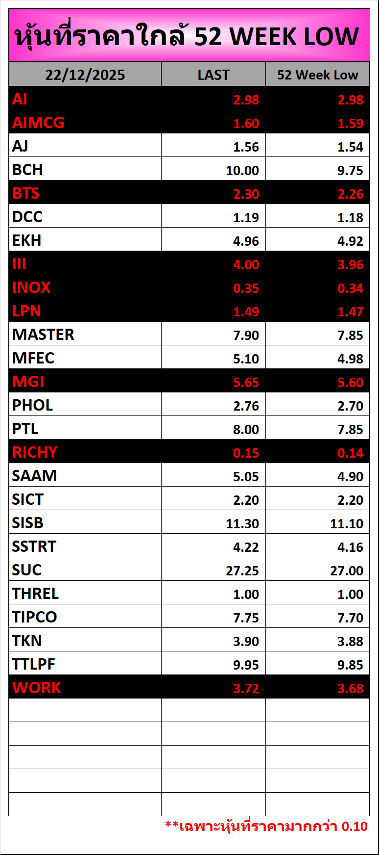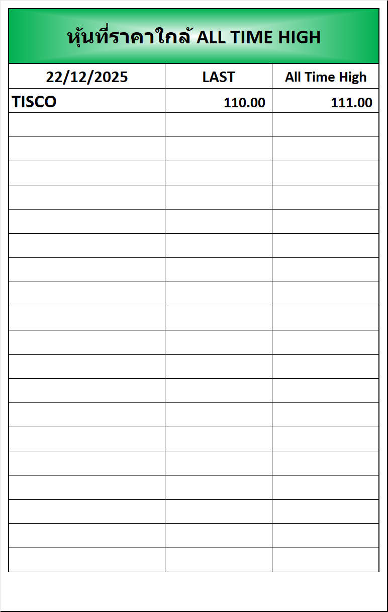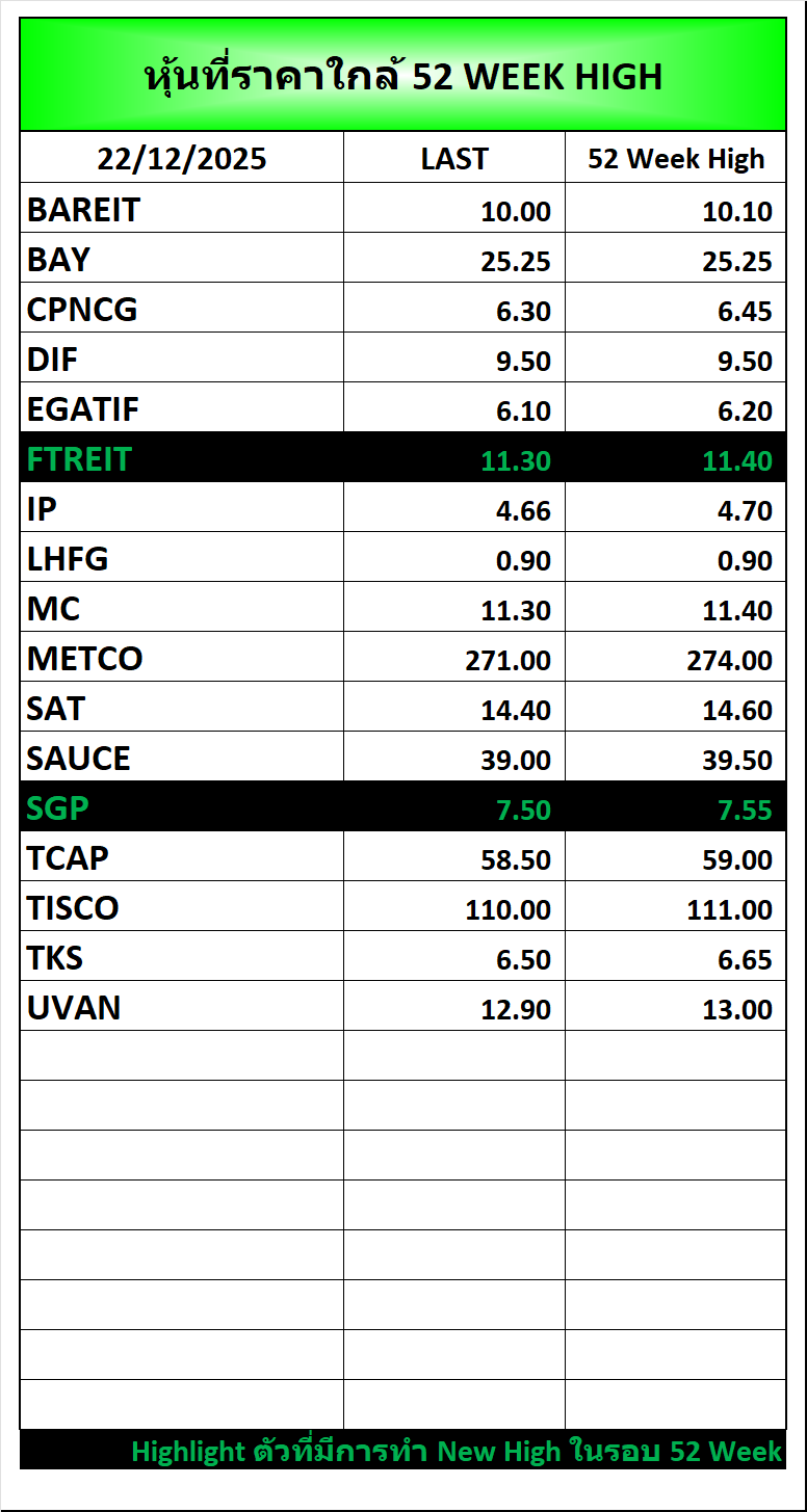 ⭐🔥หุ้นที่ราคาใกล้ ALL TIME 🟢High 🔴Low 📅22/12/2025