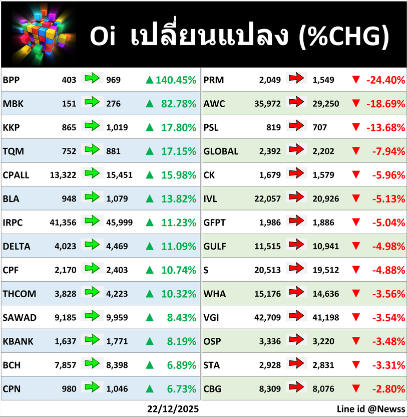 สถานะคงค้าง (Oi) 📅22/12//2025 📅 2025-12-23 00:01 ✎ administrator 🗇 TFEX 👍 - แชร์โพสต์นี้ สถานะคงค้าง (Oi) 📅22/12//2025 ดูย้อนหลัง https://addnewss.news/post?sp=OI