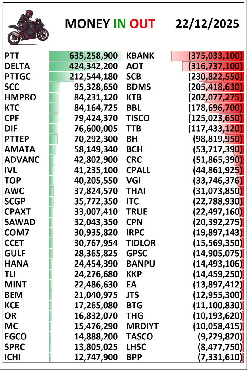 💸MONEY 🟢IN 🔴OUT 1 , 5 , 10 วันย้อนหลัง 22/12/2025