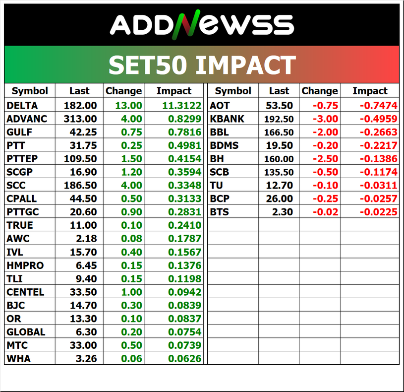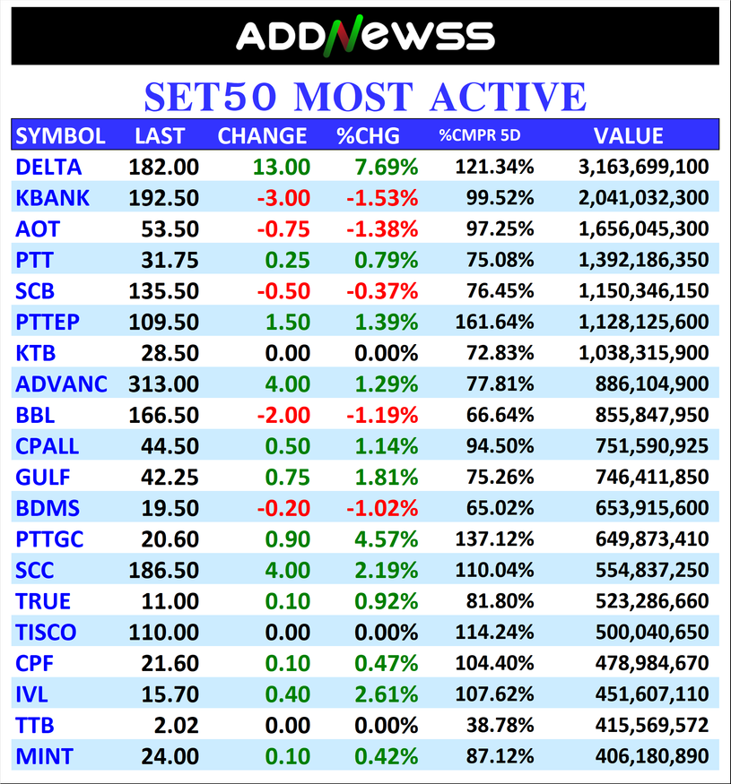 DELTA : 🟢+13.00 ฿3,163,699,100