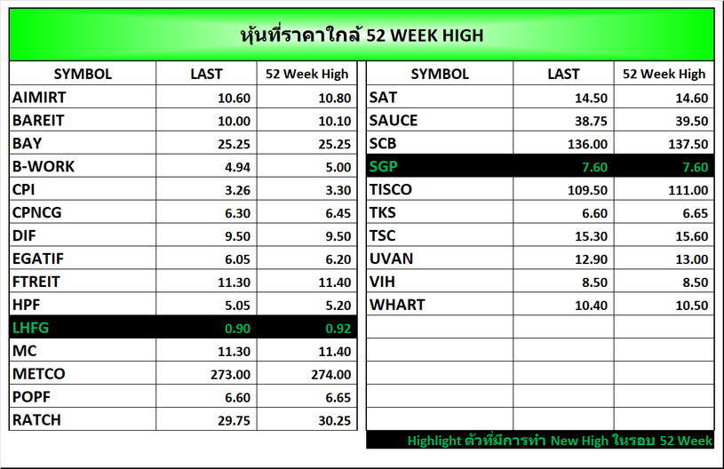 ⭐หุ้นที่ราคาใกล้ 52 Week 🟢High 🔴Low 📅23/12/2025