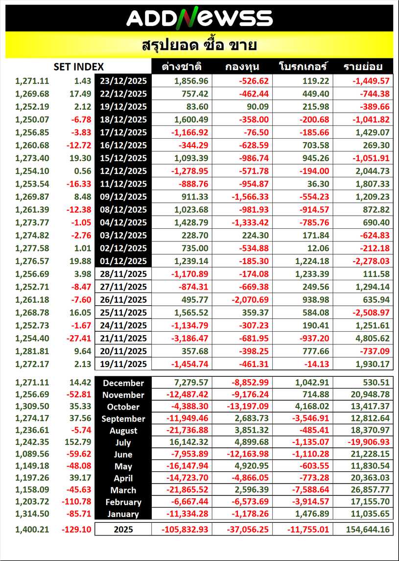 🔥🔥สรุปยอด 🟢ซื้อ🟢🔴 ขาย🔴 📅23/12/2025