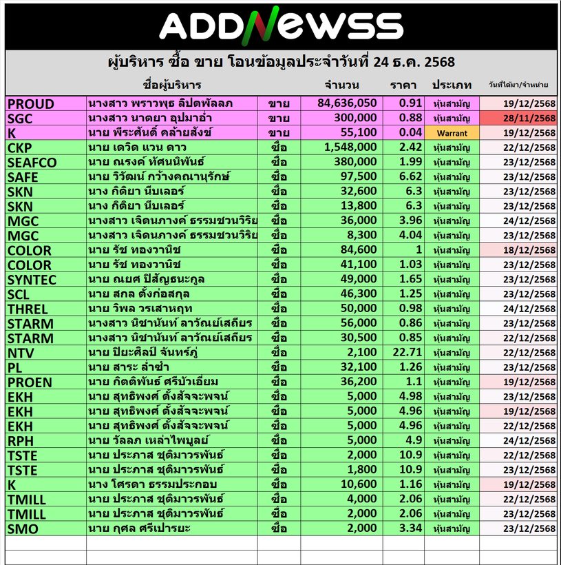 🔥🔥สรุปผู้บริหาร ซื้อ ขาย โอน