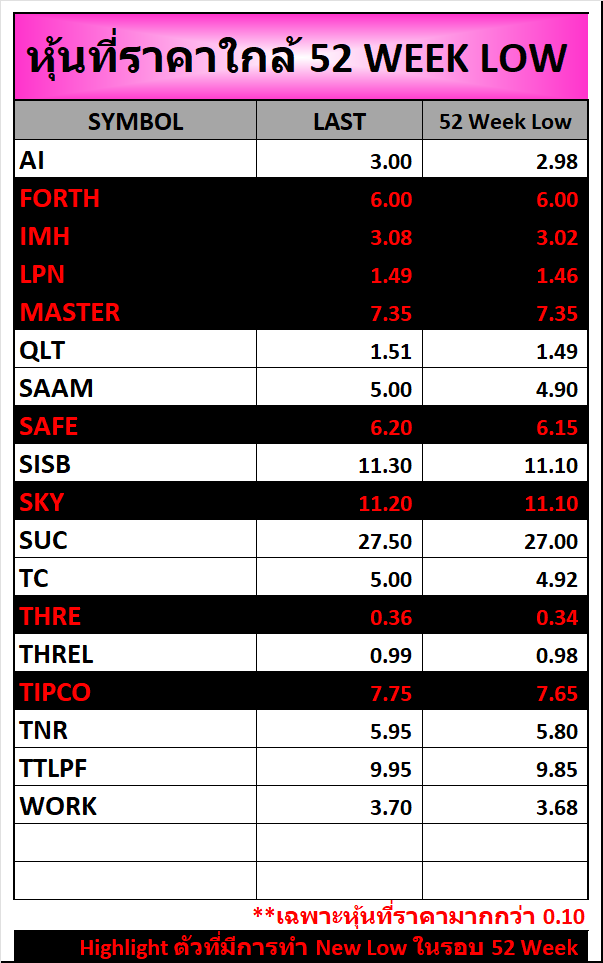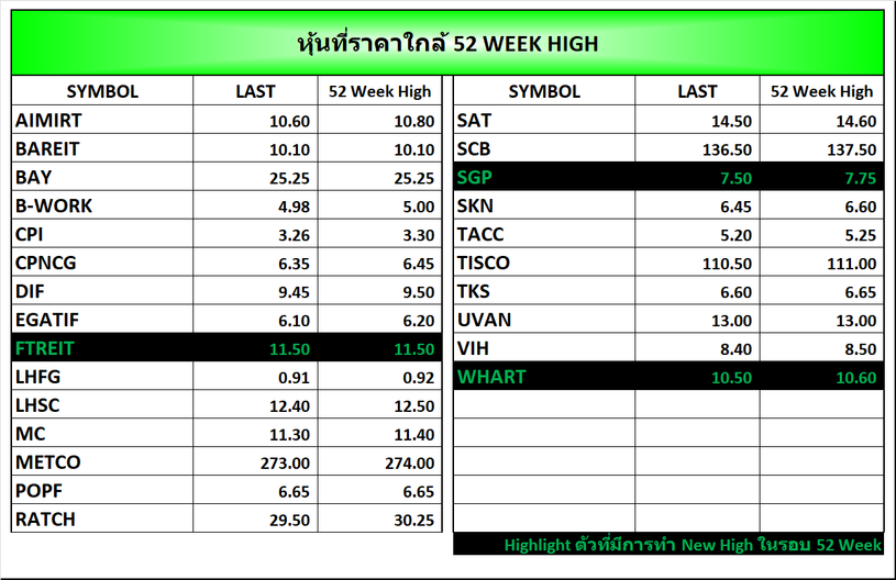 ⭐หุ้นที่ราคาใกล้ 52 Week 🟢High 🔴Low 📅24/12/2025