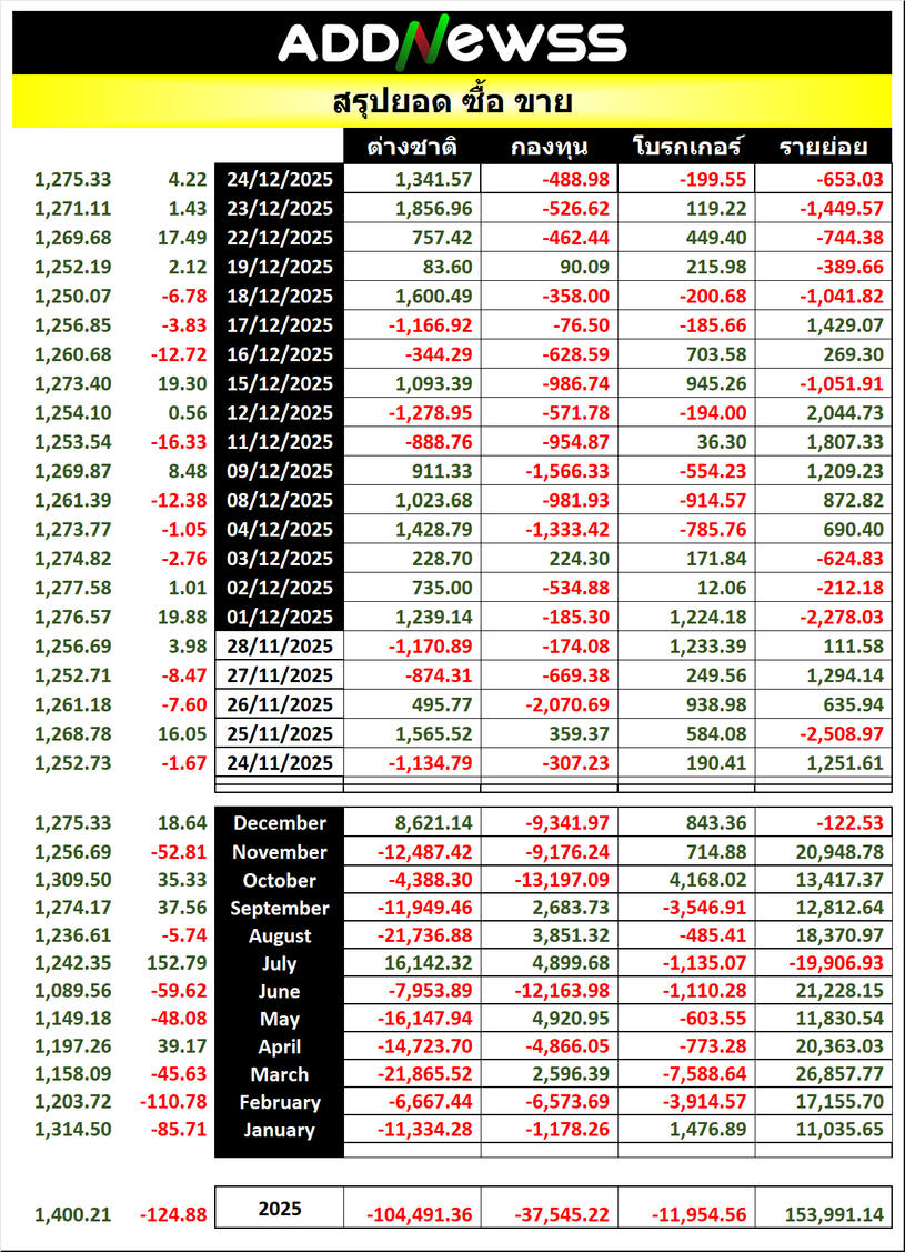 🔥🔥สรุปยอด 🟢ซื้อ🟢🔴 ขาย🔴 📅24/12/2025