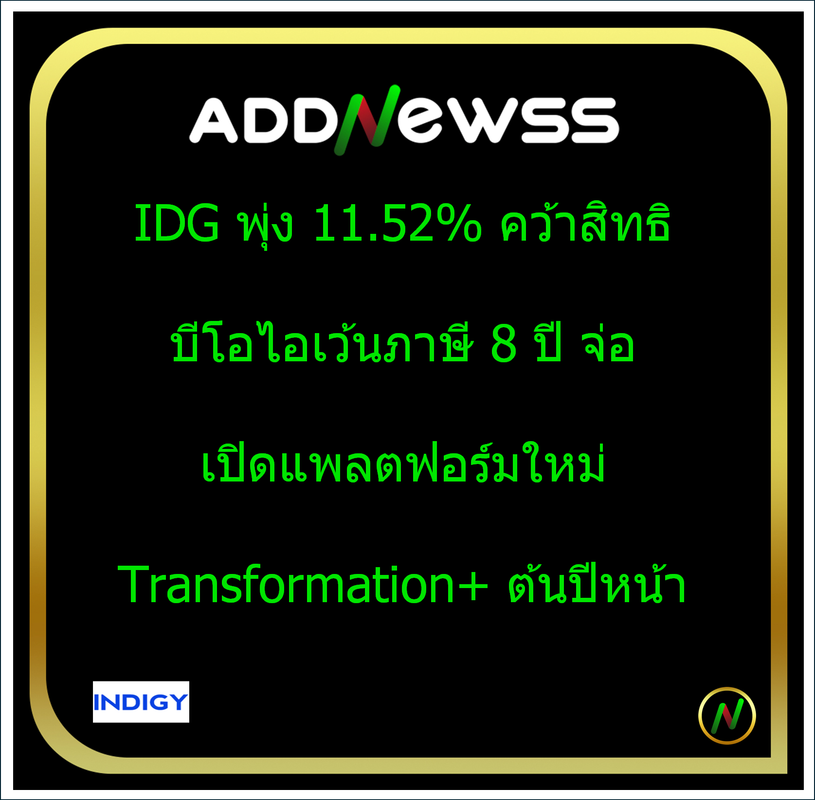 IQ > HILITE: IDG พุ่ง 11.52% คว้าสิทธิบีโอไอเว้นภาษี 8 ปี จ่อเปิดแพลตฟอร์มใหม่ Transformation+ ต้นปีหน้า