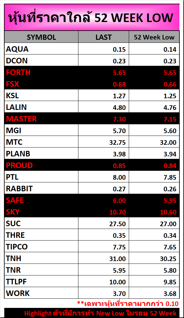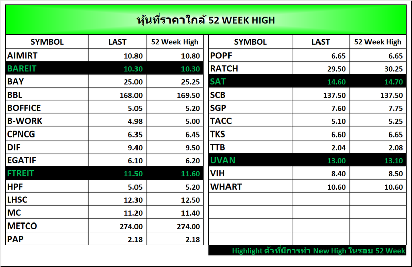 ⭐หุ้นที่ราคาใกล้ 52 Week 🟢High 🔴Low 📅25/12/2025