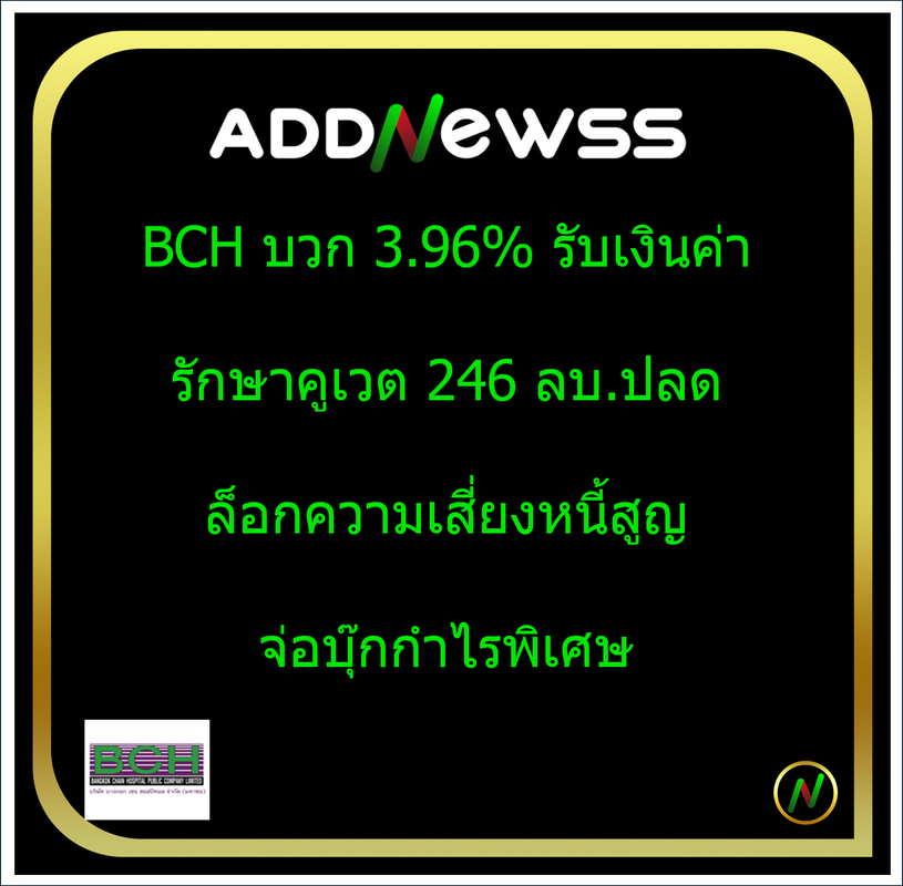 IQ > HILITE: BCH บวก 3.96% รับเงินค่ารักษาคูเวต 246 ลบ.ปลดล็อกความเสี่ยงหนี้สูญจ่อบุ๊กกำไรพิเศษ