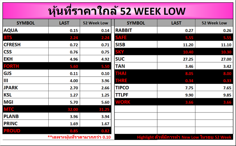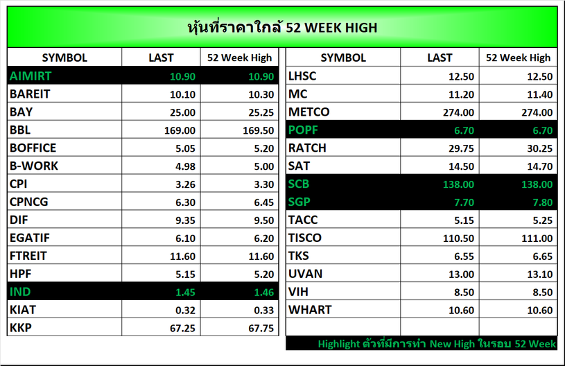 ⭐หุ้นที่ราคาใกล้ 52 Week 🟢High 🔴Low 📅26/12/2025