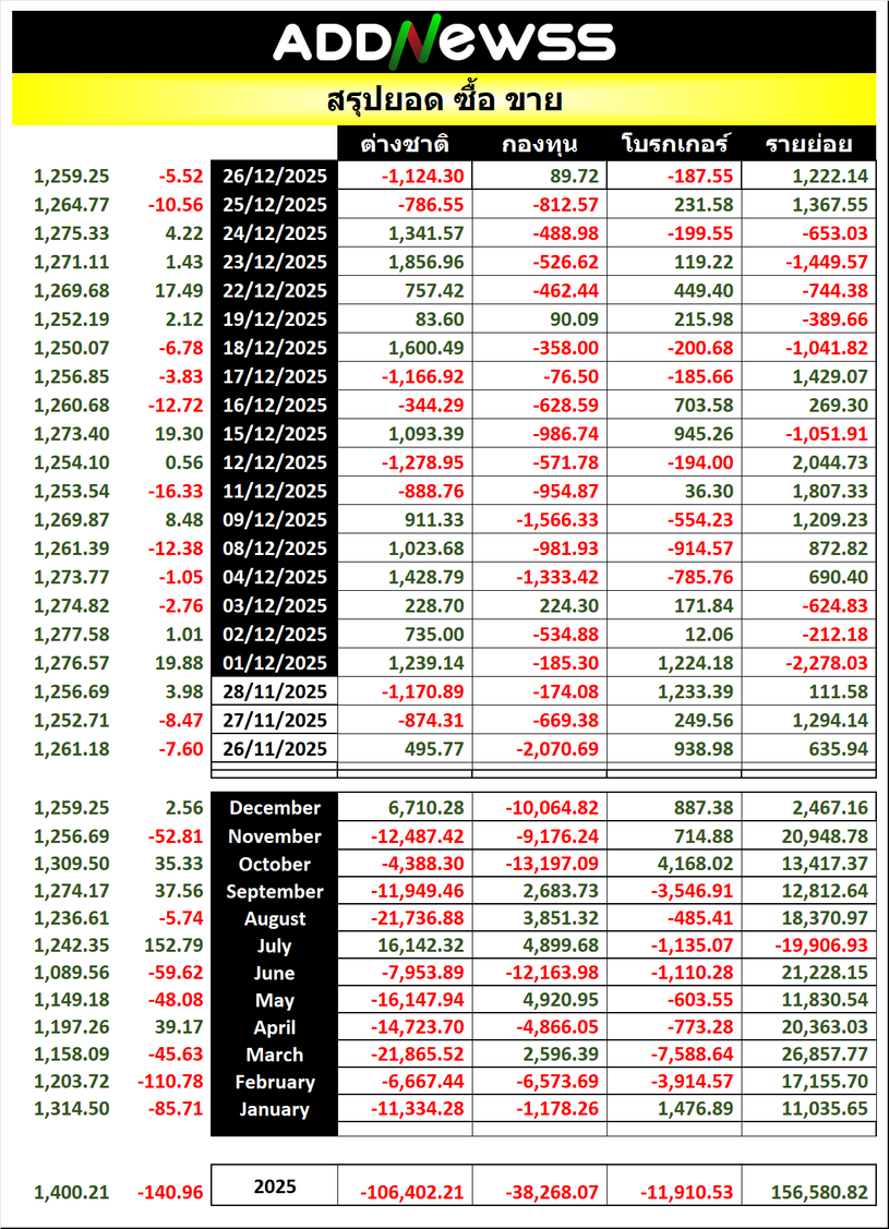 🔥🔥สรุปยอด 🟢ซื้อ🟢🔴 ขาย🔴 📅26/12/2025