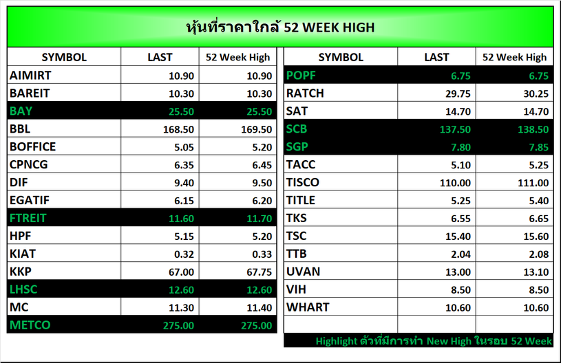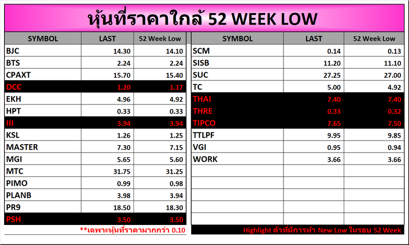 ⭐หุ้นที่ราคาใกล้ 52 Week 🟢High 🔴Low 📅29/12/2025