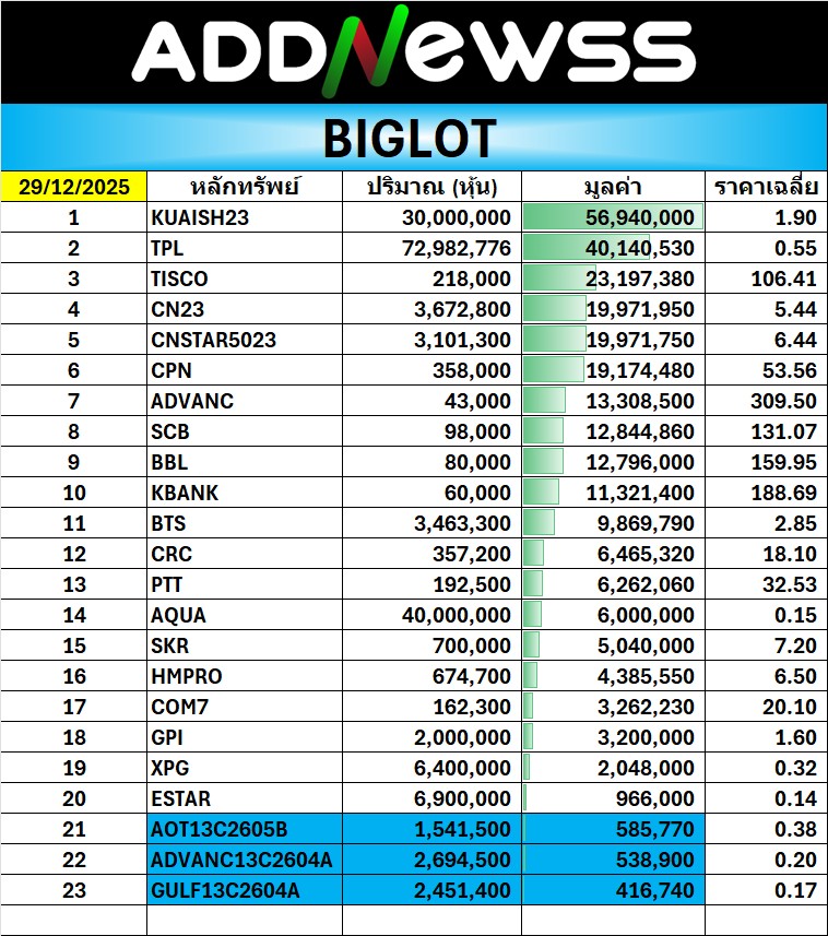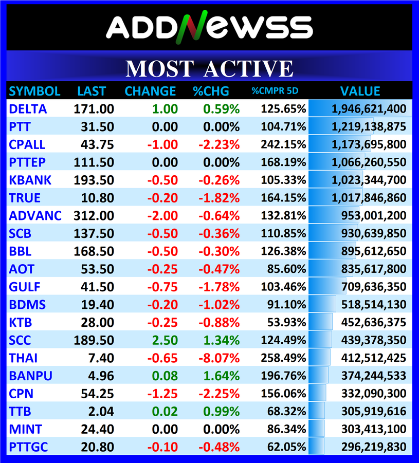 CPALL : 🔻-1.00 ฿1,173,695,800