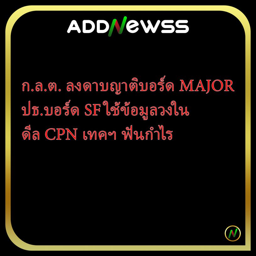 IQ> ก.ล.ต. ลงดาบญาติบอร์ด MAJOR-ปธ.บอร์ด SF ใช้ข้อมูลวงในดีล CPN เทคฯ ฟันกำไร