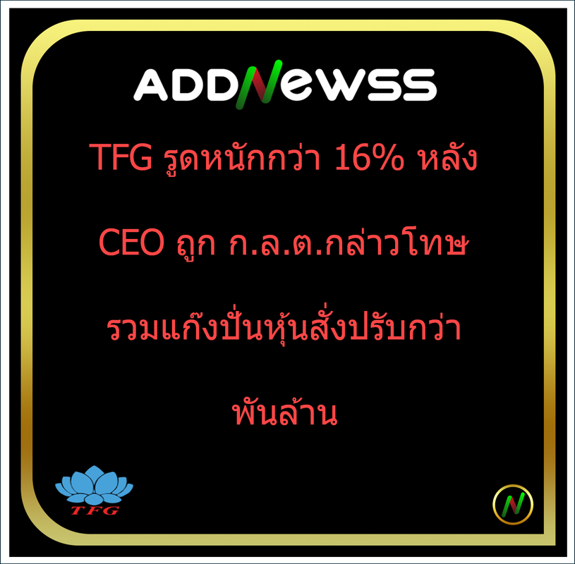 IQ > -TFG รูดหนักกว่า 16% หลัง CEO ถูก ก.ล.ต.กล่าวโทษรวมแก๊งปั่นหุ้นสั่งปรับกว่าพันล้าน