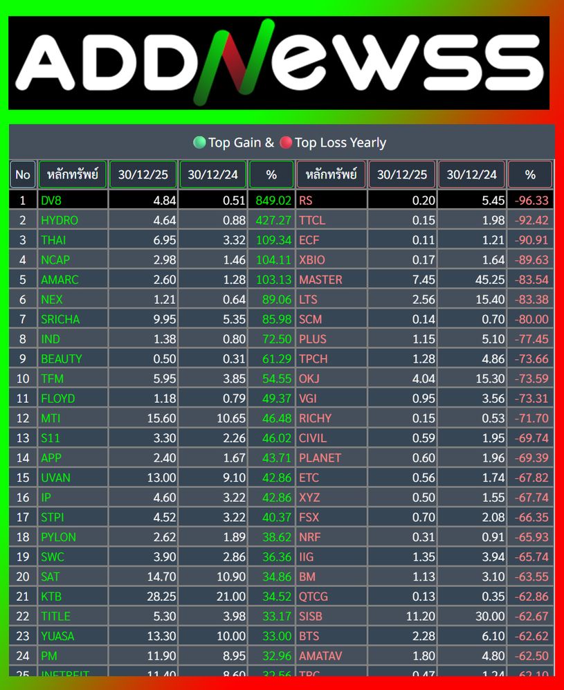 2025 🟢Top Gain & 🔴Top Loss https://addnewss.news/year 📅 2025-12-30 17:53 ✎ administrator 🗇 📰News 👍 - แชร์โพสต์นี้ 2025 🟢Top Gain & 🔴Top Loss https://addnewss.news/year