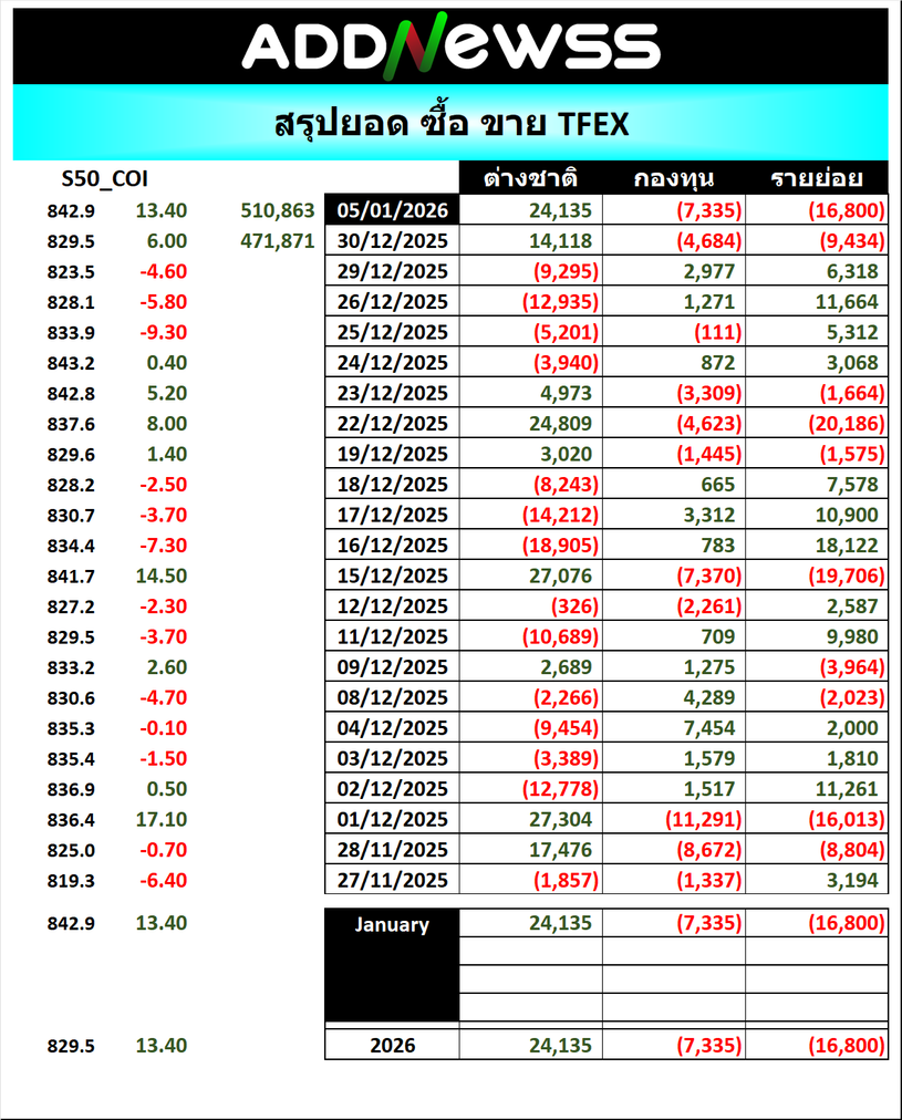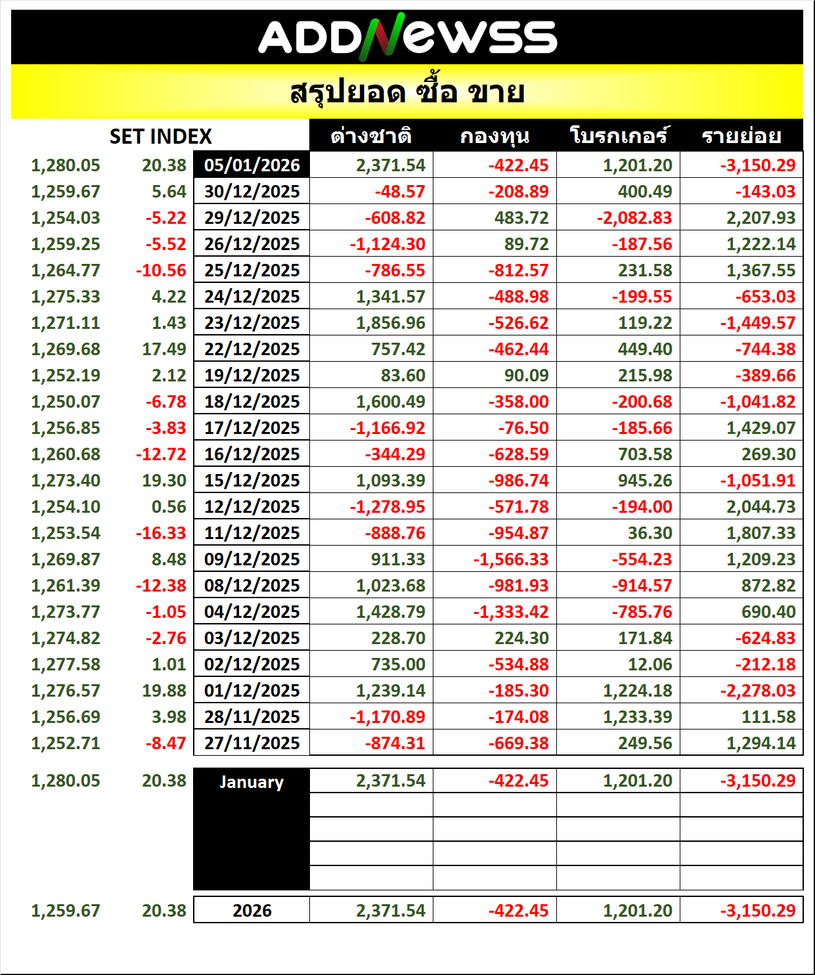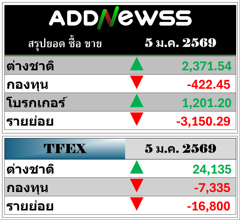 🔥🔥สรุปยอด 🟢ซื้อ🟢🔴 ขาย🔴 📅05/01/2025