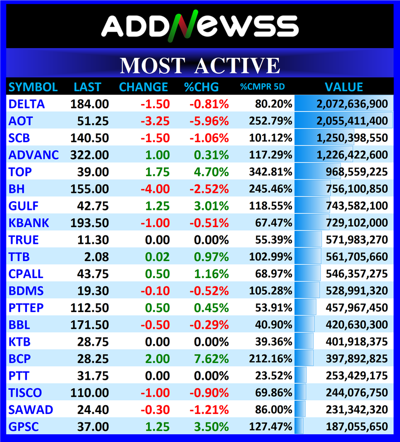 DELTA : 🔻-1.50 ฿2,072,636,900