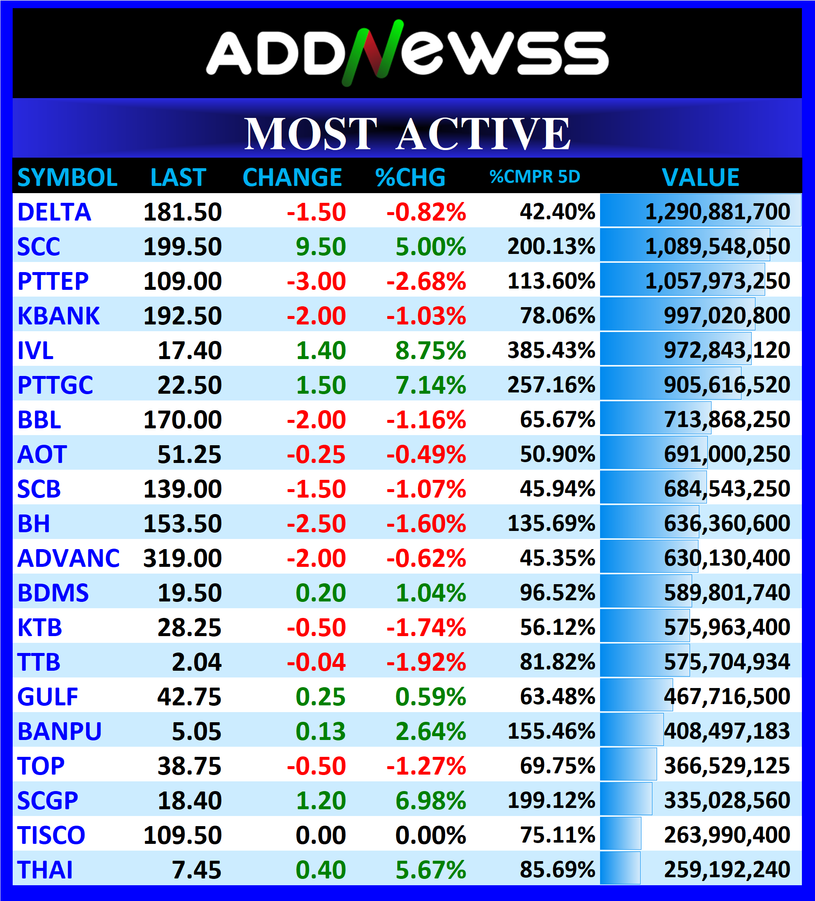 DELTA : 🔻-1.50 ฿1,290,881,700