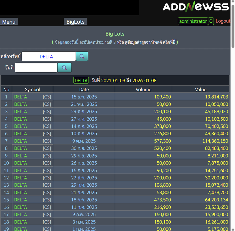 DELTA มี BIGLOE 45,550,000 หุ้น ราคา 171 บาท