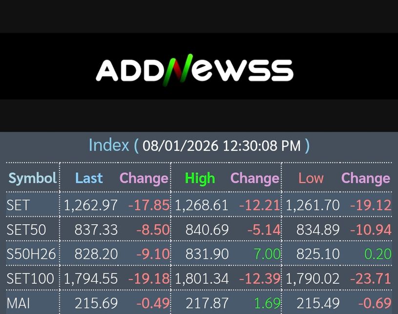 📊เช้าวันนี้ดัชนีตลาดหุ้นไทยปิดที่ 1,262.97 ลดลง -17.85 จุด หรือ -1.39%