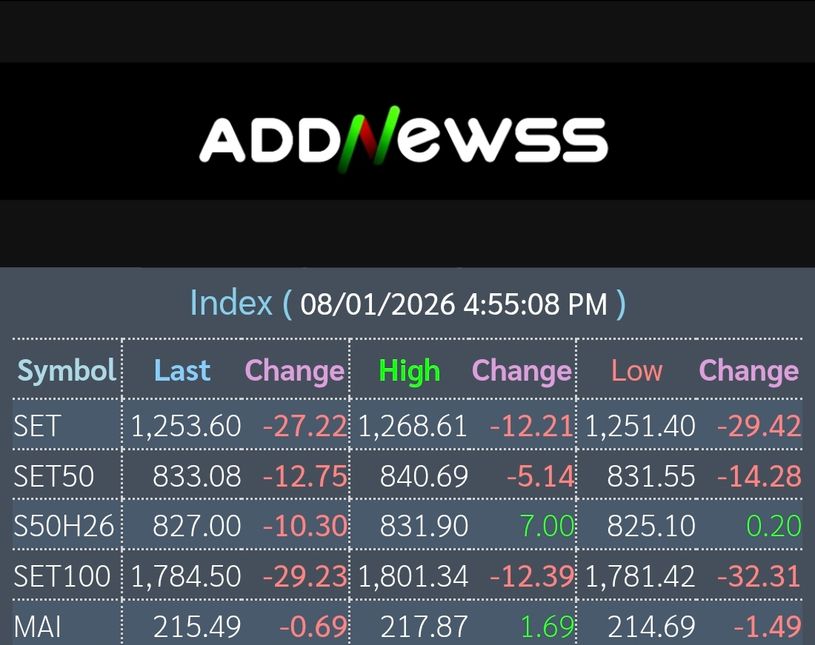 📊เย็นวันนี้ดัชนีตลาดหุ้นไทยปิดที่ 1,253.60 ลดลง -27.22 จุด หรือ -2.13%