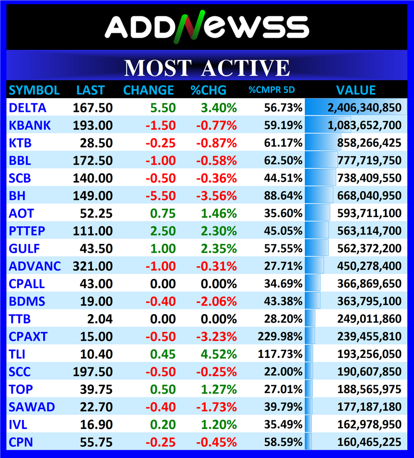 DELTA : 🟢+5.50 ฿2,406,340,850
