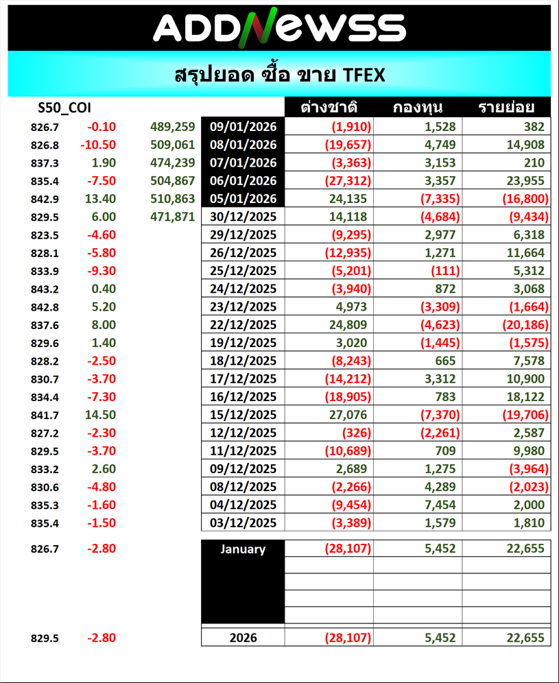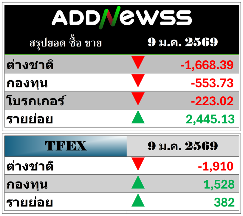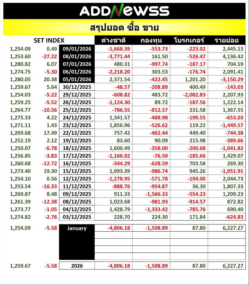 🔥🔥สรุปยอด 🟢ซื้อ🟢🔴 ขาย🔴 📅09/01/2025