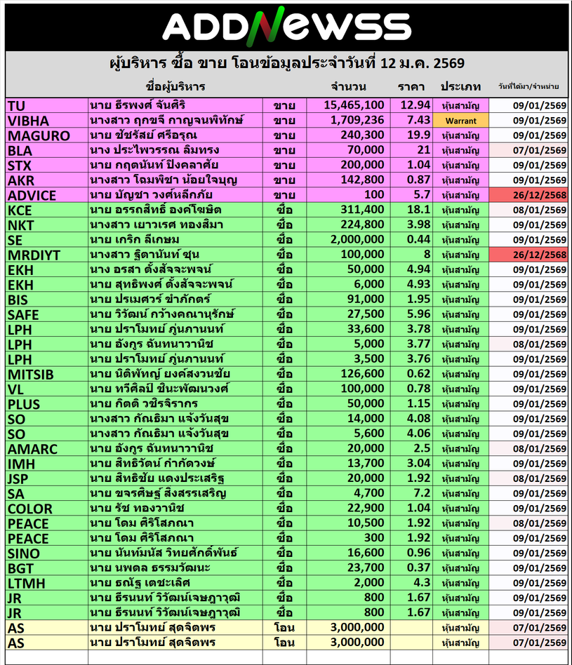 🔥🔥สรุปผู้บริหาร ซื้อ ขาย โอน