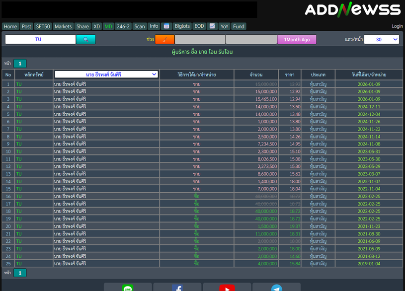ธีรพงศ์ จันศิริ 🔴ขาย TU 15,465,100 หุ้น