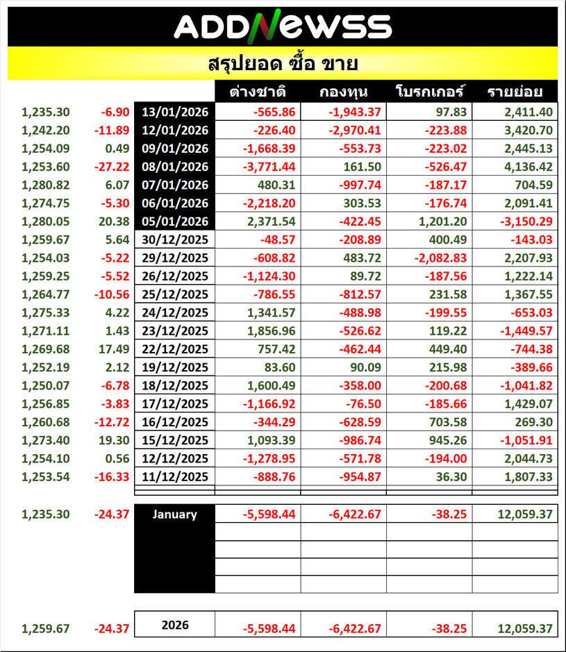 🔥🔥สรุปยอด 🟢ซื้อ🟢🔴 ขาย🔴 📅13/01/2025 📅 2026-01-13 17:24 ✎ administrator 🗇 SUM 👍 - แชร์โพสต์นี้ 🔥🔥สรุปยอด 🟢ซื้อ🟢🔴 ขาย🔴 📅13/01/2025