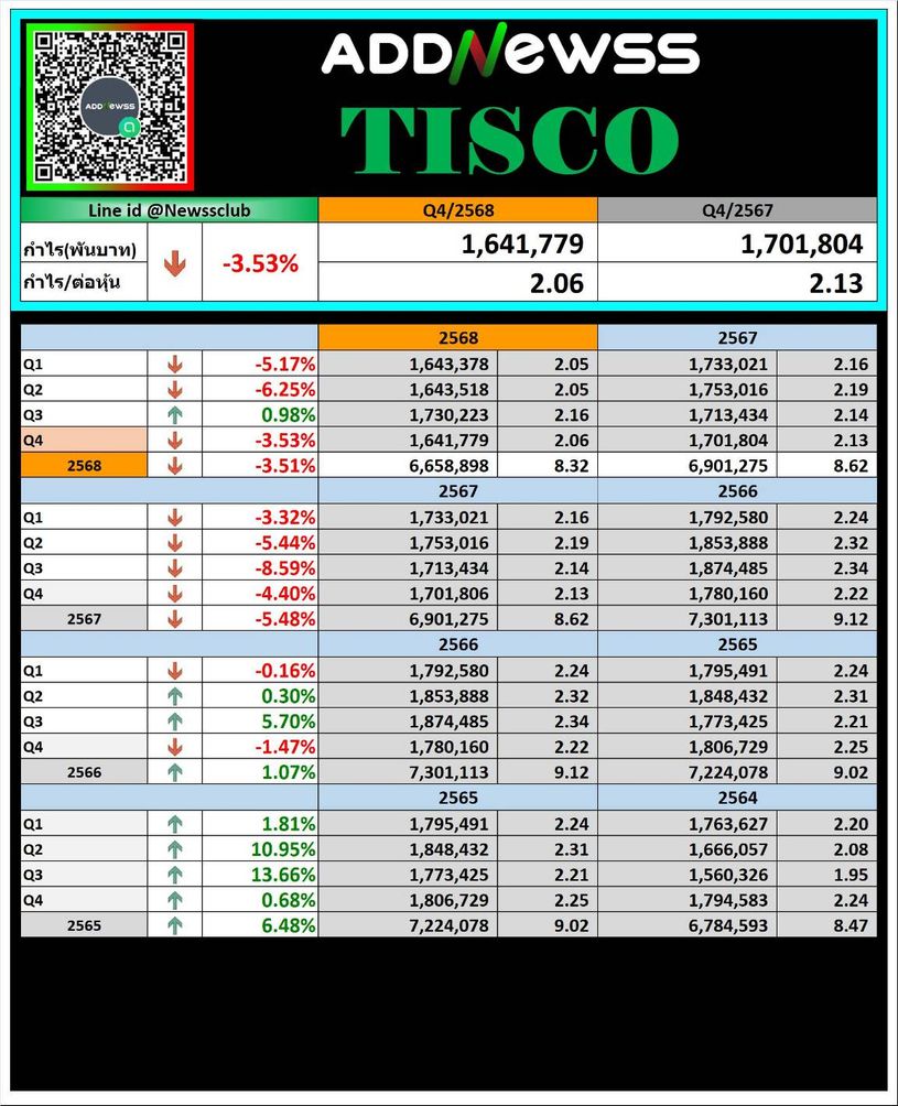 āđāļāđāļāļĢāļĄāļēāļŠ 4/2568 TISCO āļĄāļĩāļāļģāđāļĢāļŠāļļāļāļāļīāļĢāļēāļ§ 1.63 āļāļąāļāļĨāđāļēāļāļāļēāļ āļāļ°āļĨāļāļĨāļāļāļąāđāļ YoY āđāļĨāļ° QoQ āļāļēāļĄāļĢāļēāļĒāđāļāđāļāļāļāđāļāļĩāđāļĒāļŠāļļāļāļāļīāļāļĩāđāļĨāļāļĨāļāļāļēāļāļāļāļĢāđāļāļŠāļīāļāđāļāļ·āđāļāļāļĩāđāļŦāļāļāļąāļ§ āļāļĒāđāļēāļāđāļĢāļāđāļāļēāļĄ āļāļēāļĢāļāļ§āļāļāļļāļĄāļāđāļāļāļļāļāđāļĨāļ°āļāļēāļĢāļāļąāđāļāļŠāļģāļĢāļāļāđāļāļĢāļ°āļāļąāļāđāļŦāļĄāļēāļ°āļŠāļĄāļāđāļ§āļĒāļāļģāļāļąāļāļāļēāļĢāļāđāļāļāļāļąāļ§āļāļāļāļāļģāđāļĢ āļāļģāđāļŦāđāļ āļēāļāļĢāļ§āļĄāļĒāļąāļāļŠāļ°āļāđāļāļāđāļŠāļāļĩāļĒāļĢāļ āļēāļāļāļāļāļāļĨāļāļĢāļ°āļāļāļāļāļēāļĢ
