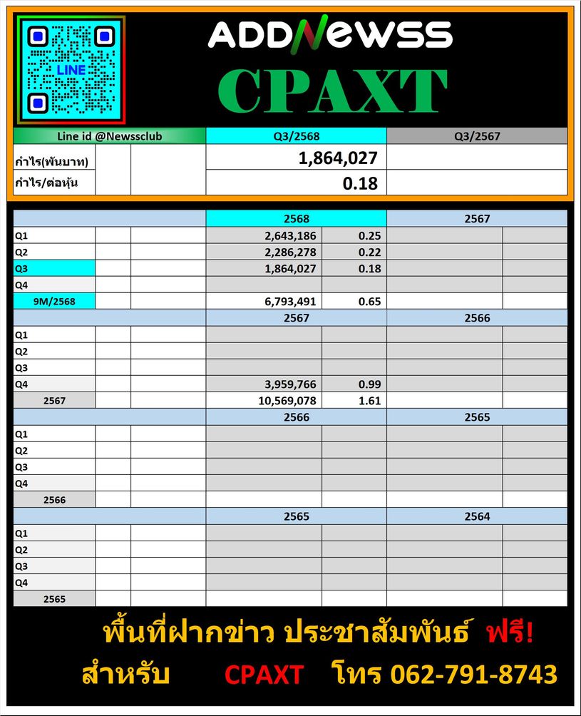 8.43 CMNT> CPAXT: แนะนำ "Neutral" ราคาเป้าหมาย 16.00 บาท - บล.กรุงศรี