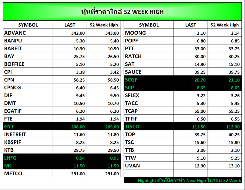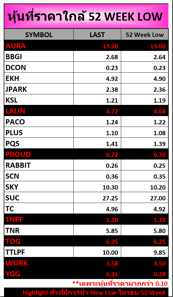 ⭐หุ้นที่ราคาใกล้ 52 Week 🟢High 🔴Low 📅16/01/2026