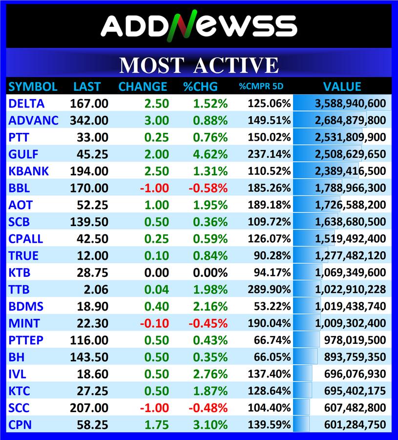 DELTA : 🟢+2.50 ฿3,588,940,600