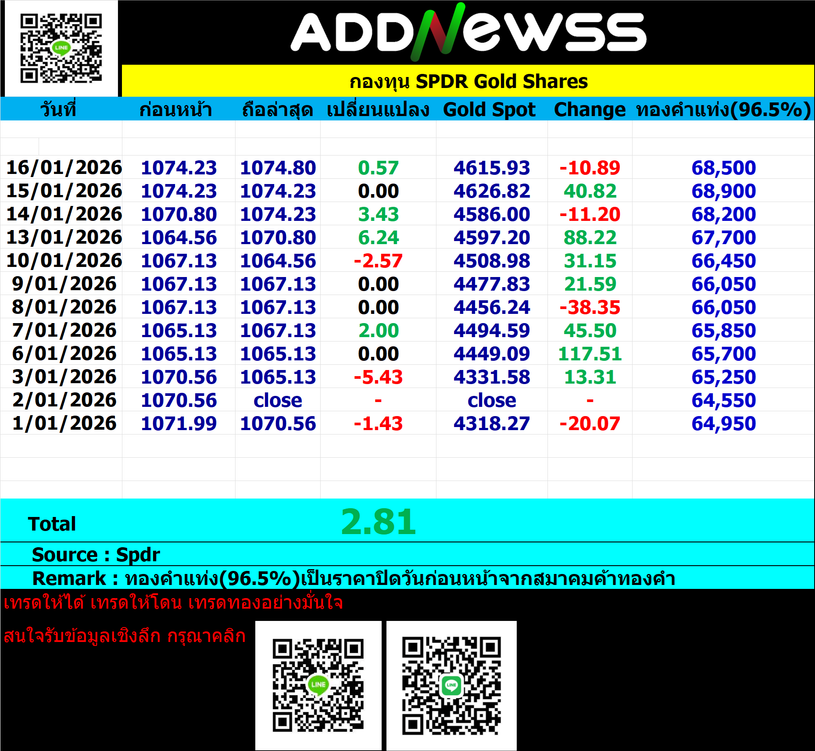 ยอดสะสม Spdr ย้อนหลังประจำเดือนธันวาคม 2025