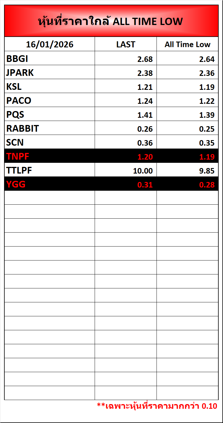 ⭐🔥หุ้นที่ราคาใกล้ ALL TIME 🟢High 🔴Low 📅16/01/2026