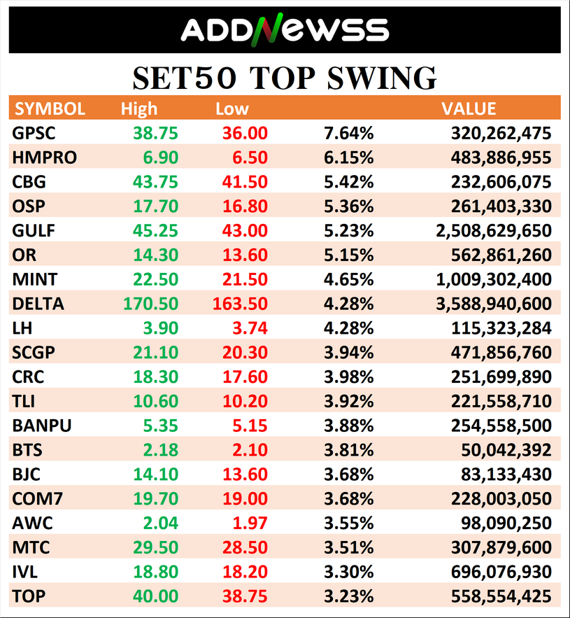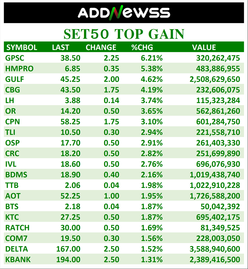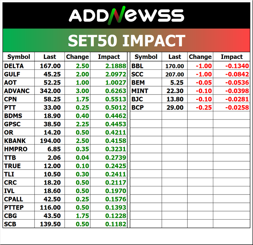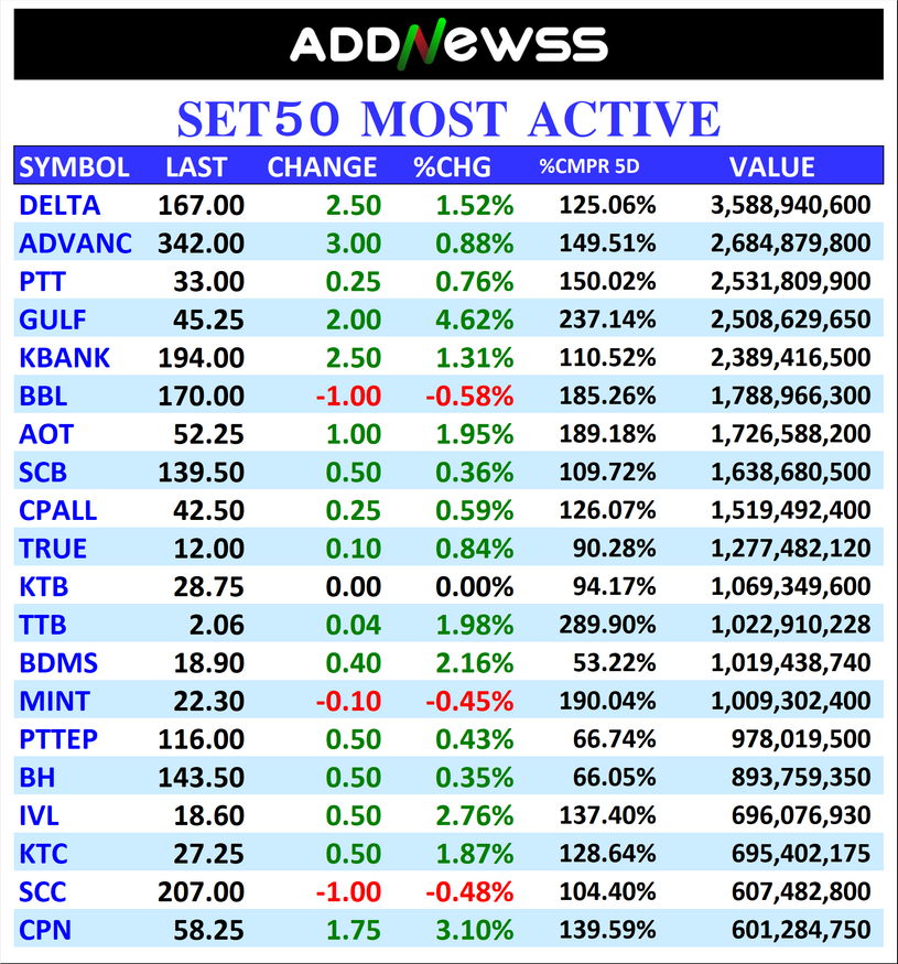 DELTA : 🟢+2.50 ฿3,588,940,600