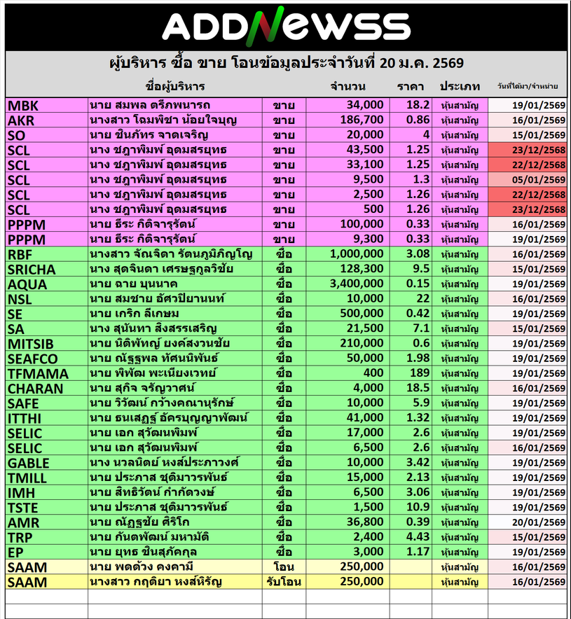 🔥🔥สรุปผู้บริหาร ซื้อ ขาย โอน