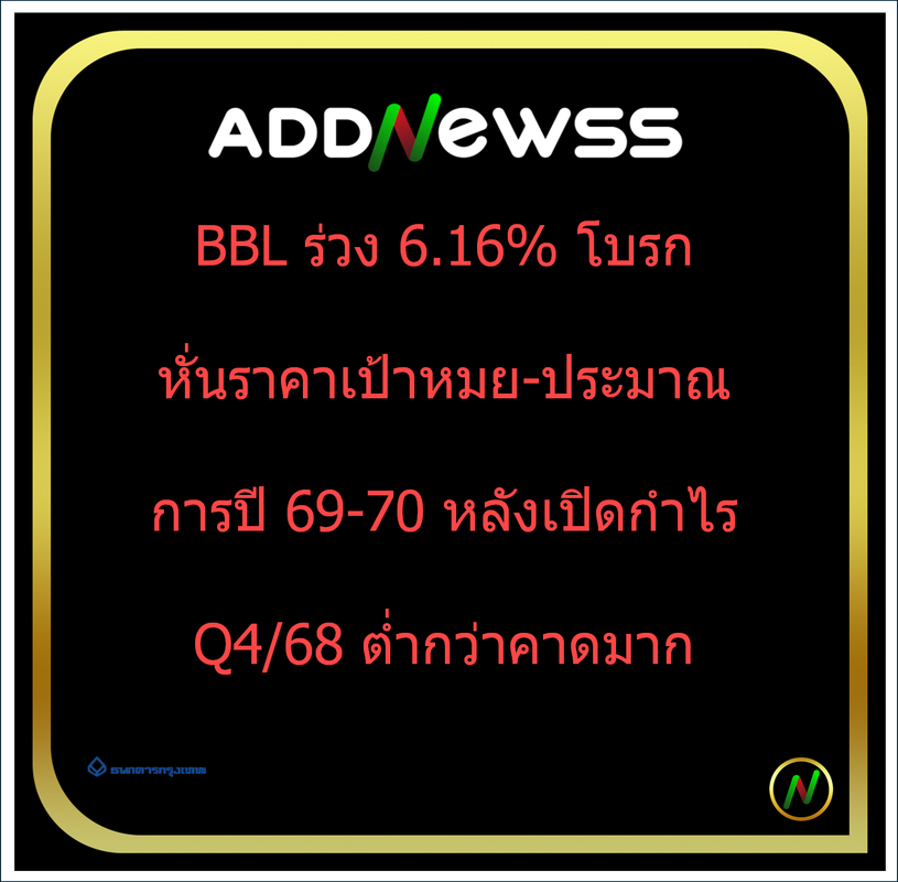 IQ > HILITE: BBL ร่วง 6.16% โบรกหั่นราคาเป้าหมาย-ประมาณการปี 69-70 หลังเปิดกำไร Q4/68 ต่ำกว่าคาดมาก