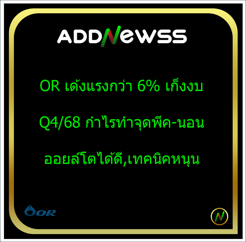 IQ > IHILITE: OR เด้งแรงกว่า 6% เก็งงบ Q4/68 กำไรทำจุดพีค-นอนออยล์โตได้ดี,เทคนิคหนุน
