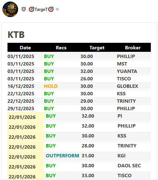 KTB > สรุปคำแนะนำ - 22/01/26