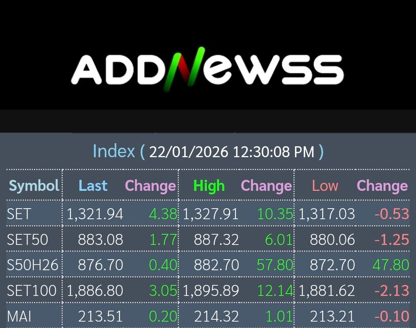 📊เช้าวันนี้ดัชนีตลาดหุ้นไทยปิดที่ 1,321.94 เพิ่มขึ้น +4.38 จุด หรือ +0.33%