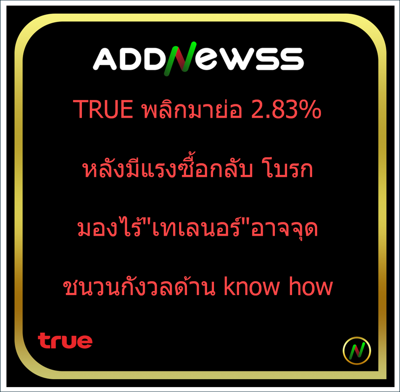 IQ > -TRUE พลิกมาย่อ 2.83% หลังมีแรงซื้อกลับ โบรกมองไร้"เทเลนอร์"อาจจุดชนวนกังวลด้าน know how-วงจรต้นทุนสูงขึ้น