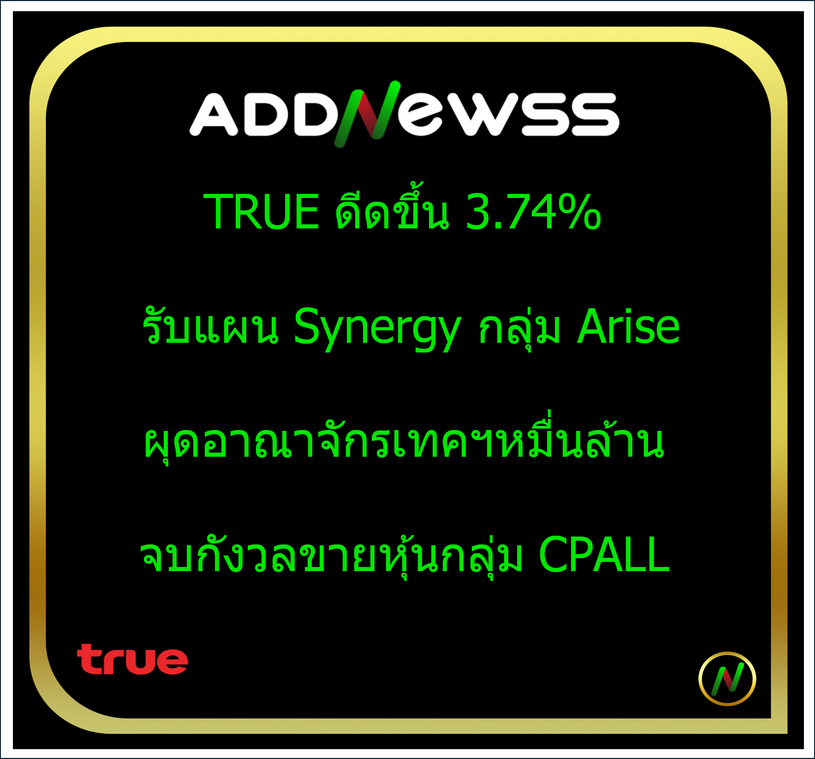 IQ > HILITE: TRUE ดีดขึ้น 3.74% รับแผน Synergy กลุ่ม Arise ผุดอาณาจักรเทคฯหมื่นล้าน จบกังวลขายหุ้นกลุ่ม CPALL