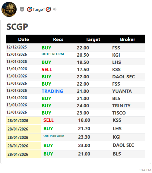 SCGP > สรุปคำแนะนำ - 28/01/26