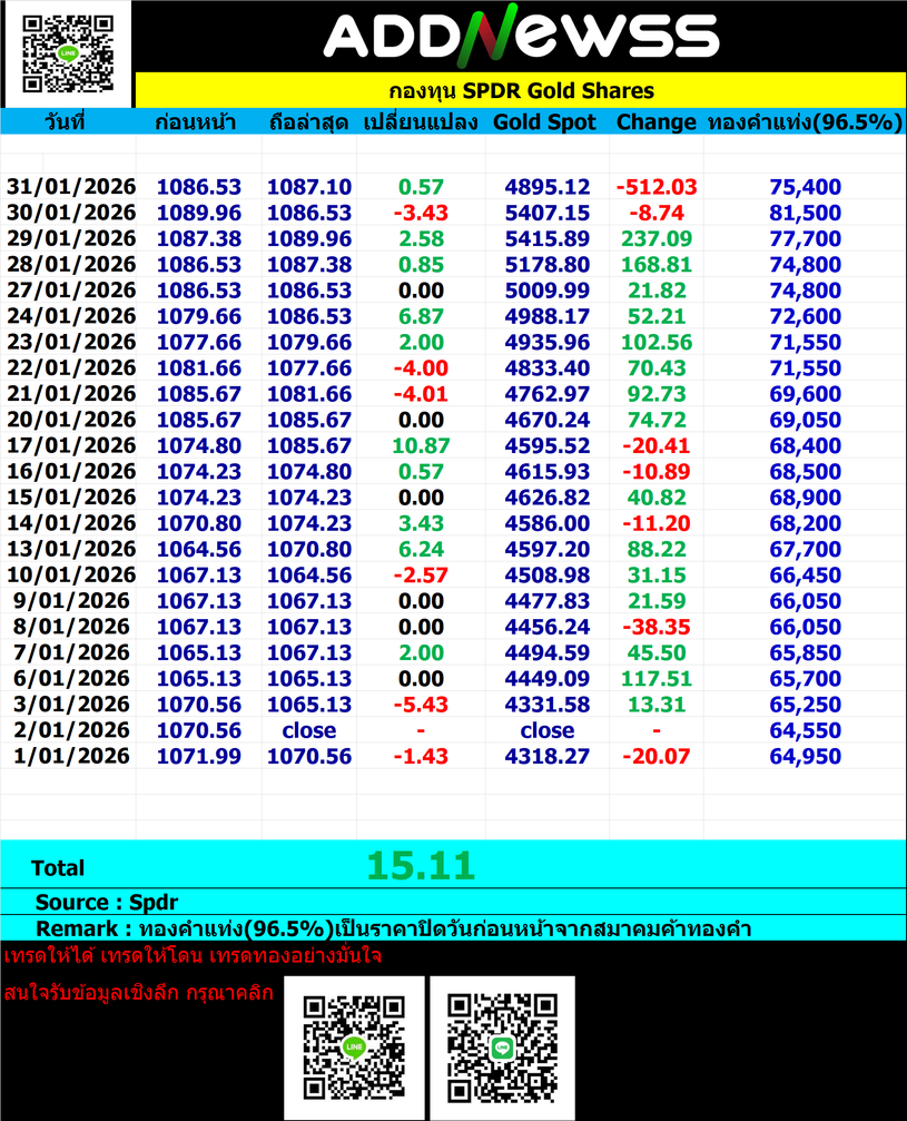 ยอดสะสม Spdr ย้อนหลังประจำเดือนธันวาคม 2025