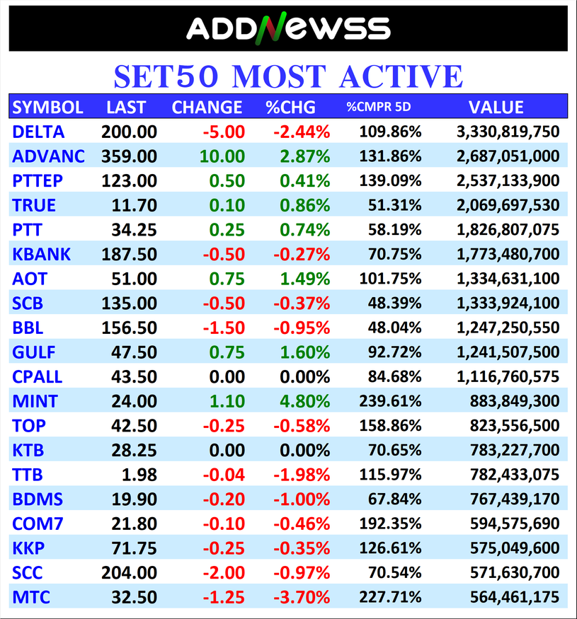 ADVANC : 🟢+10.00 ฿2,687,051,000