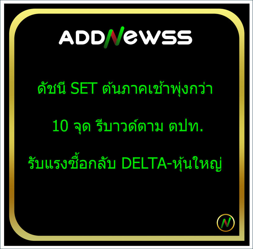 IQ > *ดัชนี SET ต้นภาคเช้าพุ่งกว่า 10 จุด รีบาวด์ตาม ตปท.รับแรงซื้อกลับ DELTA-หุ้นใหญ่