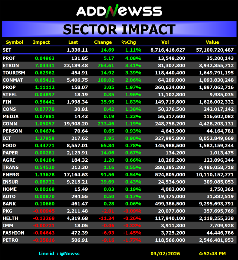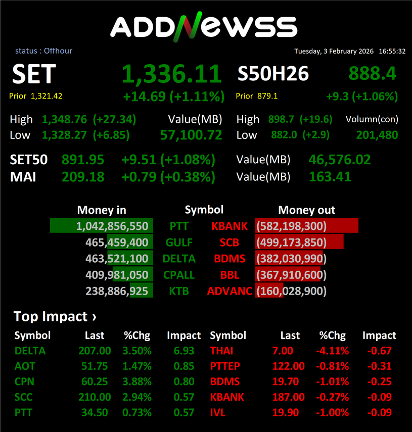 DELTA : 🟢+7.00 ฿3,293,560,100